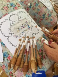 A produção de Renda de Bilros é uma técnica complexa, que consiste em entrelaçar fios com o auxílio de bilros de madeira, trabalhados em pares sobre uma almofada, formando padrões delicados. Trata-se de um processo minucioso e paciente, que exige habilidade e ritmo, resultando em peças únicas, cheias de beleza e significado.