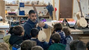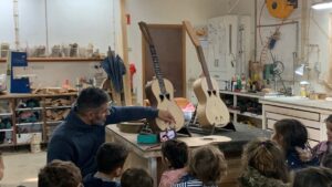 A visita à carpintaria do senhor Raimundo Leonardes, no Topo, foi uma verdadeira viagem pelo mundo da construção de violas, com ricas explicações sobre a mesma. Foram apresentados dois instrumentos em fase avançada de construção, bem como alguns constituintes, expostos numa mesa baixa, para que todos pudessem ver.